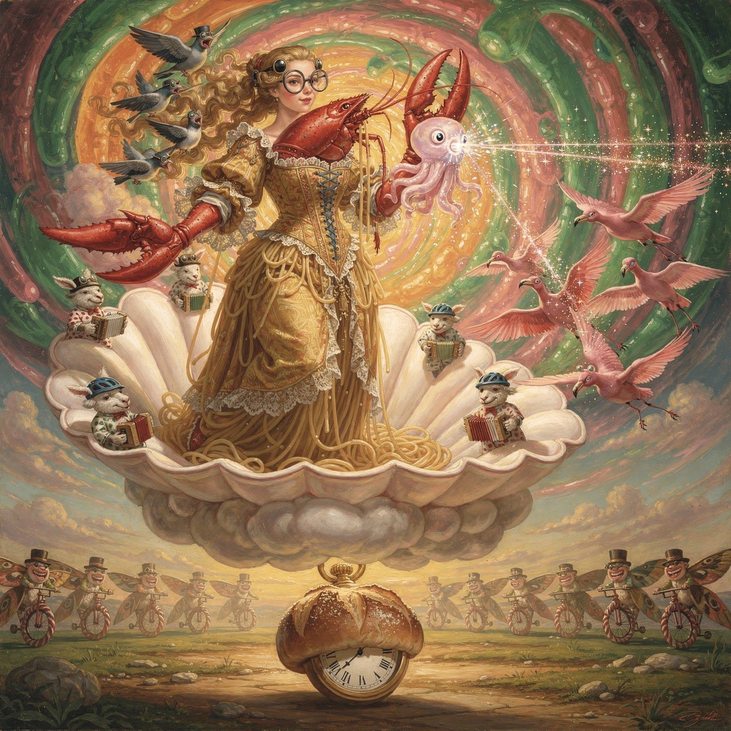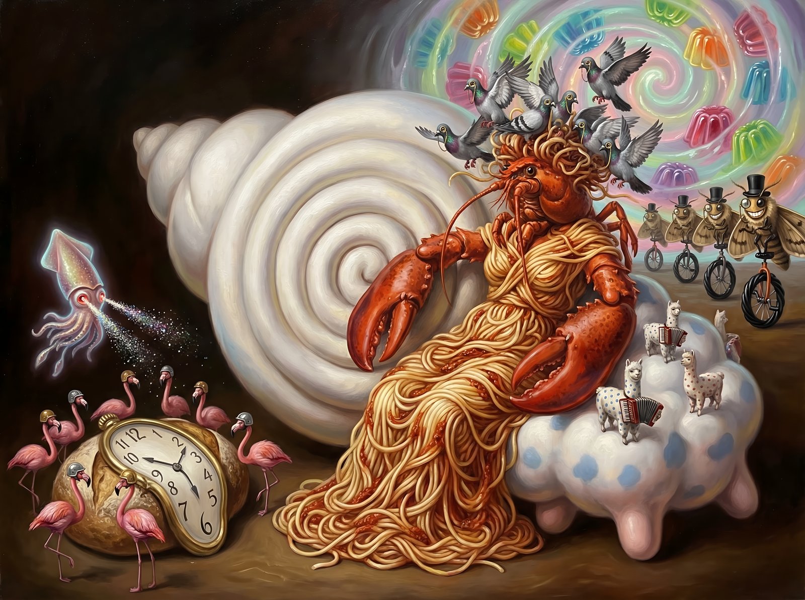 For this piece I prompted Qwen3-14B-MLX-4bit. Its answer was then handed, unedited, to six different image generation models, all using seed 42. What follows is how each one interpreted the same prompt.